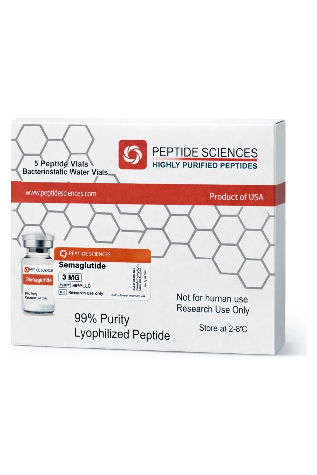 Peptide Sciences offers high-purity Semaglutide for laboratory research. As a glucagon-like peptide-1 (GLP-1) receptor agonist, it mimics a natural hormone that targets areas of the brain that regulate appetite and food intake.